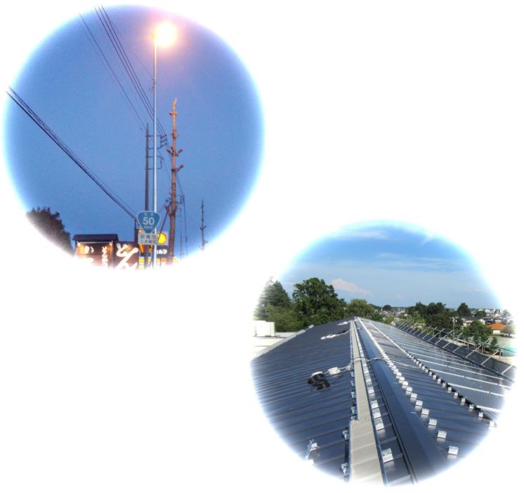 例えば国道沿いの照明灯工事や、架空配電線路の工事。一般住宅からメガソーラーまで手掛ける太陽光発電設備工事。皆さまの交通安全に欠かすことの出来ない交通信号機工事など、電気工事のことなら大小を問わず得意とする分野です。